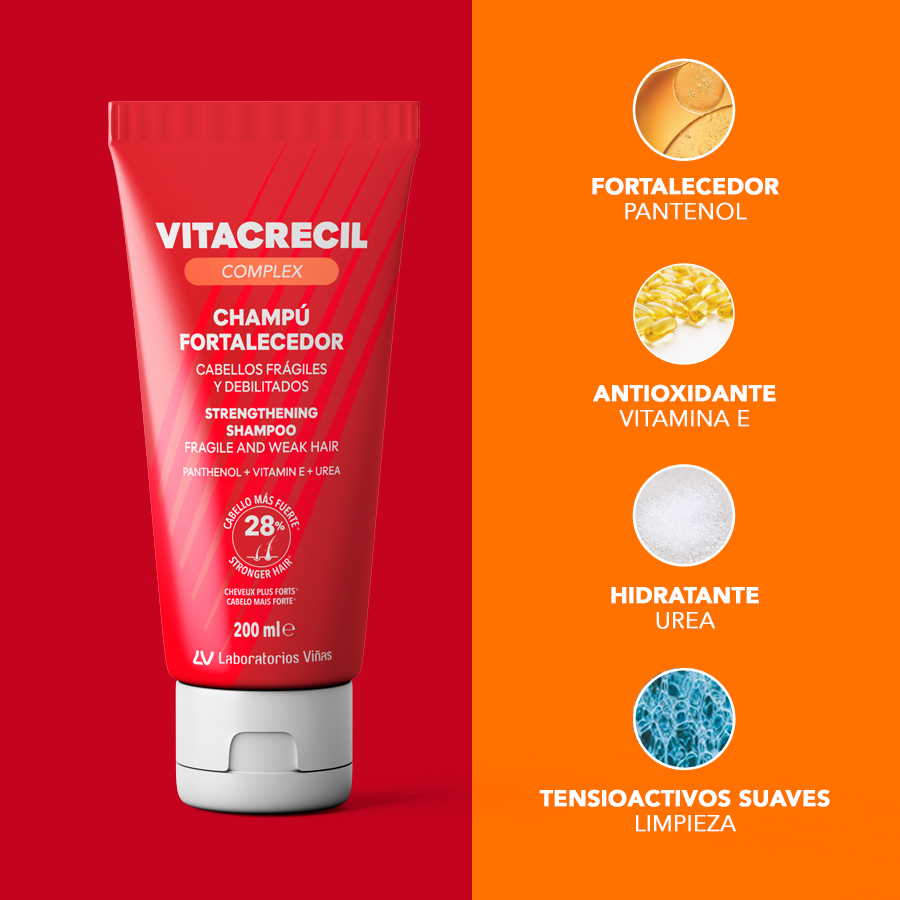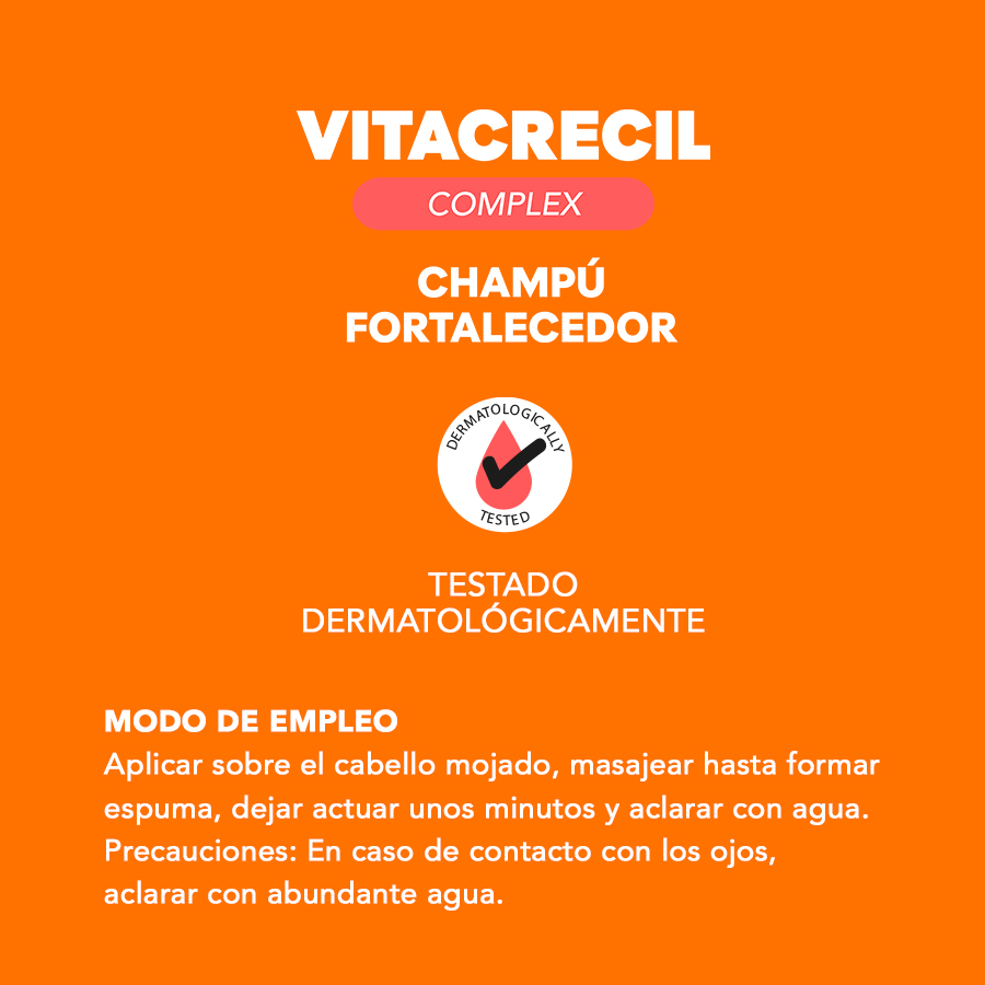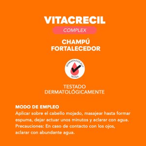 Vitacrecil Complex Champú Fortalecedor esta diseñado especialmente para la higiene diaria fortalecedora y protectora frente a la caída del cabello.