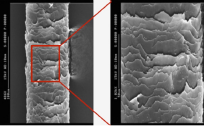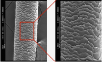 * Representación gráfica en 3D con Microscopía Electrónica de Barrido de una cutícula dañada y de una cutícula sana tratada con productos acondicionadores del cabello